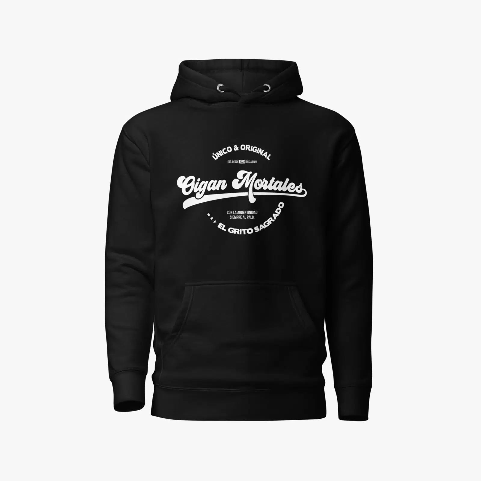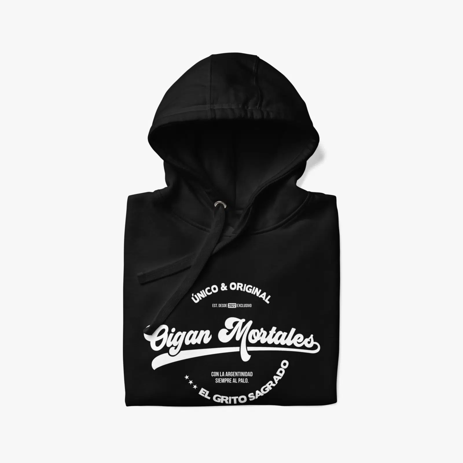 • Exterior 100% algodón • 65% algodón hilado en anillos, 35% poliéster • Bolsillo frontal • Cordón plano a juego • Capucha de 3 paneles Estás a punto de comprar un producto original de Oigan Mortales.