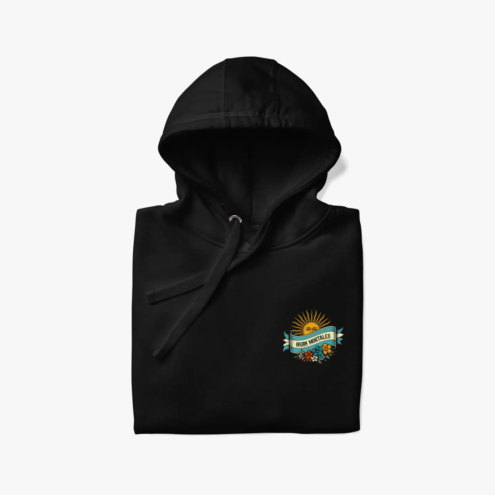 • Exterior 100% algodón • 65% algodón hilado en anillos, 35% poliéster • Bolsillo frontal • Cordón plano a juego • Capucha de 3 paneles Estás a punto de comprar un producto original de Oigan Mortales.