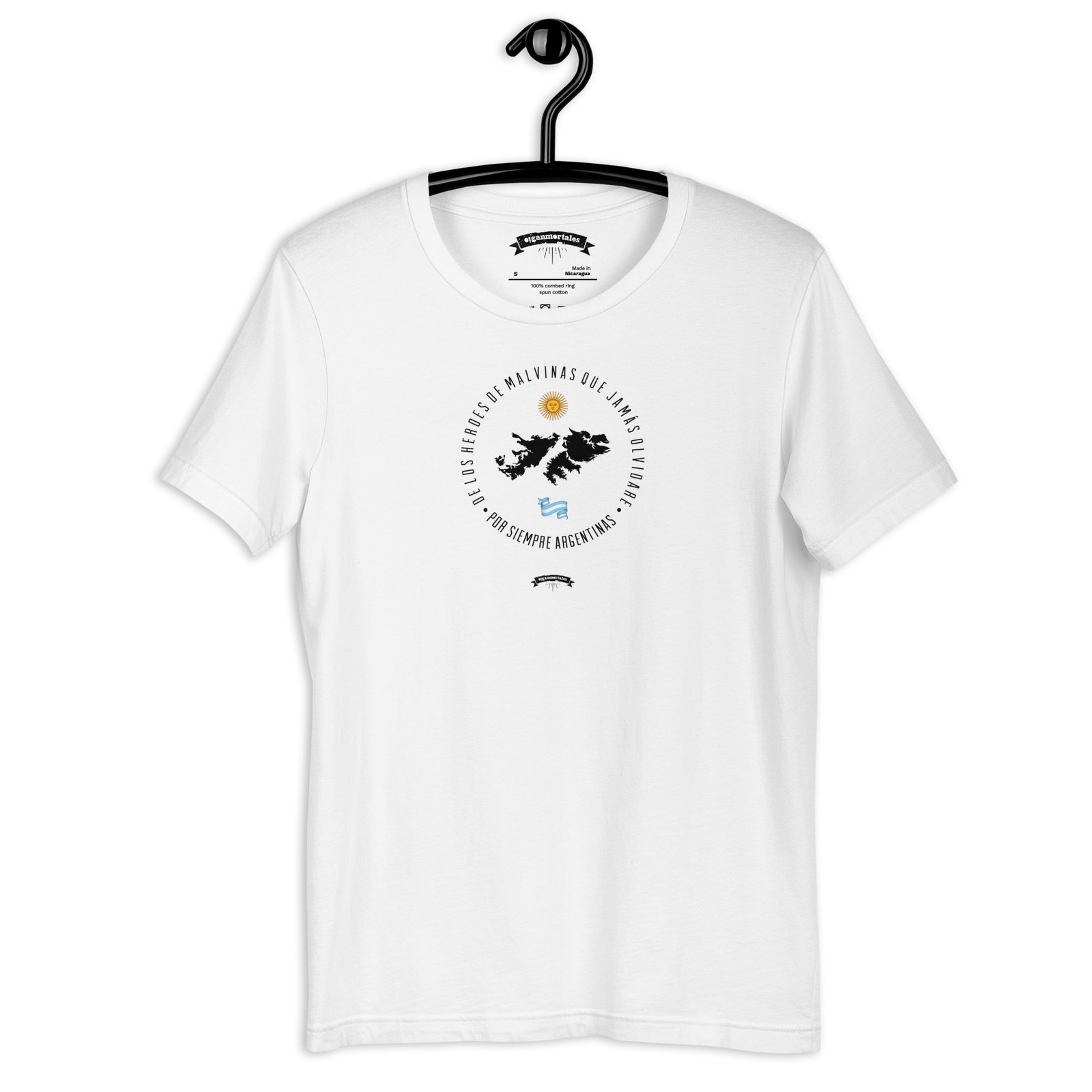 De los héroes de Malvinas que jamás olvidaré. Son nuestras, y que quede bien claro. Si ya amaste el diseño, ahora enamorate de la calidad. Mirá! • 100% algodón peinado e hilado en anillo (los colores Heather contienen poliéster) • Peso del tejido: 142 g/m² • Tela preencogida • Tapacosturas reforzado en hombros y cuello • Costuras laterales Estás a punto de comprar una remera original de OIGAN MORTALES.